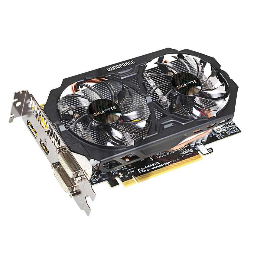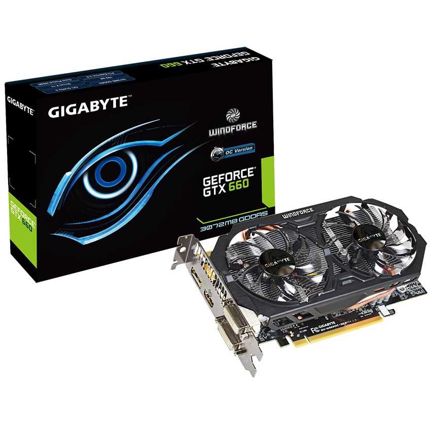 Descripción Gigabyte GV-N660OC-3GD. Familia de procesadores de gráficos: NVIDIA, Procesador gráfico: GeForce GTX 660, Máxima resolución: 4096 x 2160 Pixeles. Discrete graphics adapter memory: 3 GB, Tipo de memoria de adaptador gráfico: GDDR5-SDRAM, Ancho de datos: 192 Bit. Tipo de interfaz: PCI Express 3.0. Versión DirectX: 11.2, Versión OpenGL: 4.4. Tipo de enfriamiento: Activo, Factor de forma: ATX