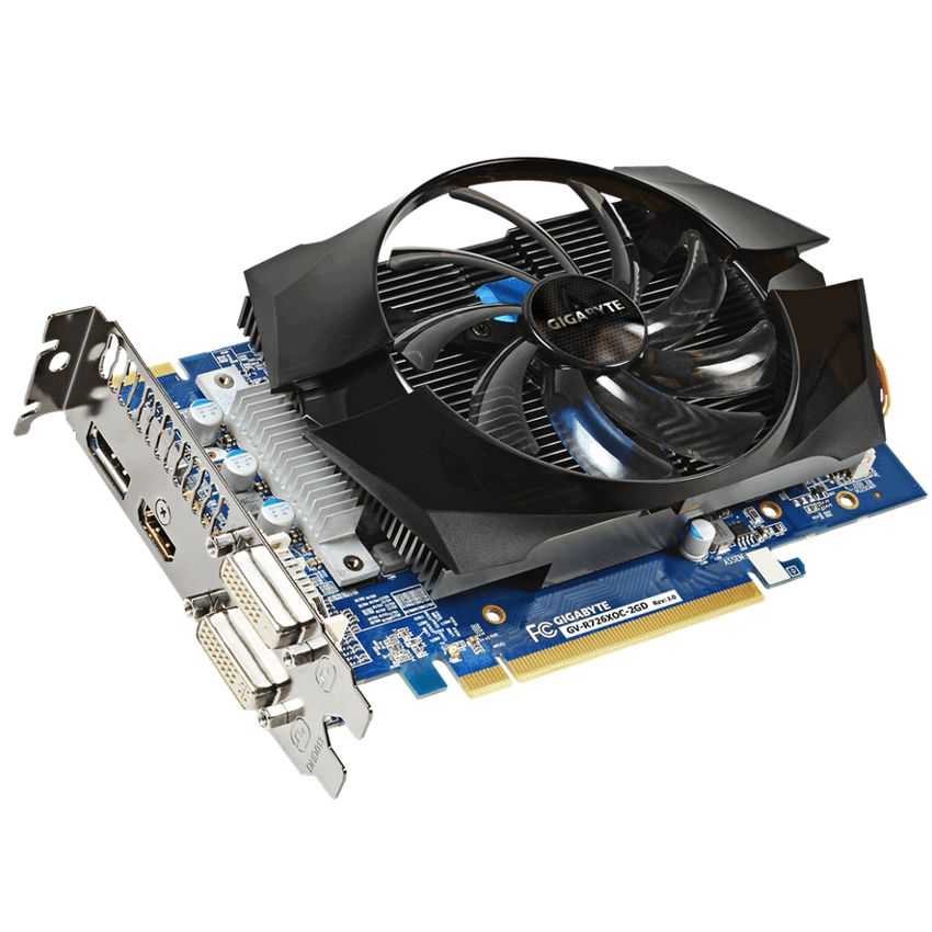 DescripciónGigabyte GV-R726XOC-2GD REV. 3.0. Familia de procesadores de gráficos: ATI, Procesador gráfico: Radeon R7 260X, Máxima resolución: 2560 x 1600 Pixeles. Discrete graphics adapter memory: 2 GB, Tipo de memoria de adaptador gráfico: GDDR5-SDRAM, Ancho de datos: 128 Bit. Tipo de interfaz: PCI Express 3.0. Versión DirectX: 11.2, Versión OpenGL: 4.3. Tipo de enfriamiento: Activo, Factor de forma: ATXEspecificacionesFamilia de procesadores de gráficos: ATIProcesador gráfico: Radeon R7 260XMáxima resolución: 2560 x 1600 PixelesCUDA: NoFrecuencia del procesador: 1100 MHzAumento de la velocidad de reloj del procesador: 1188 MHzResolución (máxima analógica): 2048 x 1536 PixelesMáximas pantallas por tarjeta de video: 3Discrete graphics adapter memory: 2 GBTipo de memoria de adaptador gráfico: GDDR5-SDRAMAncho de datos: 128 BitVelocidad de memoria del reloj: 6000 MHzTipo de interfaz: PCI Express 3.0Número de puertos HDMI: 1Cantidad de puertos DVI-D: 1Cantidad de puertos DVI-I: 1Cantidad de DisplayPorts: 1Sintonizador de TV integrado: NoPhysX: NoVersión DirectX: 11.2Versión OpenGL: 4.3Alta Definición Total: SiDual Link DVI: SiTipo de enfriamiento: ActivoFactor de forma: ATXSuministro de energía al sistema mínimo: 450WProfundidad: 13,7 cmAltura: 4,4 cmAncho: 21,4 cm