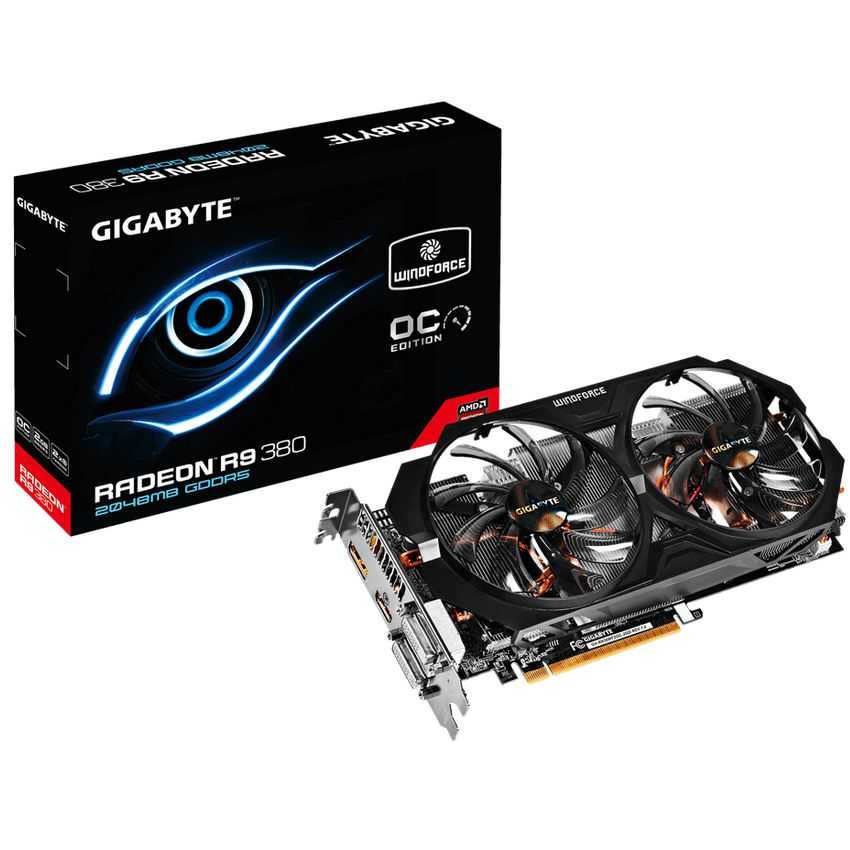 Descripción Gigabyte GV-R938WF2OC-2GD. Familia de procesadores de gráficos: AMD, Procesador gráfico: Radeon R9 380, Máxima resolución: 4096 x 2160 Pixeles. Gráficos discretos memoria del adaptador: 2 GB, Tipo de memoria de adaptador gráfico: GDDR5-SDRAM, Ancho de datos: 256 Bit. Tipo de interfaz: PCI Express 3.0. Versión DirectX: 12.0, Versión OpenGL: 4.4. Tipo de enfriamiento: Activo, Factor de forma: ATX