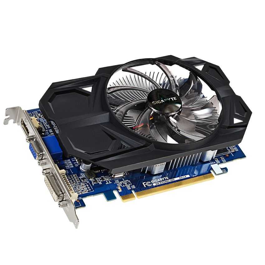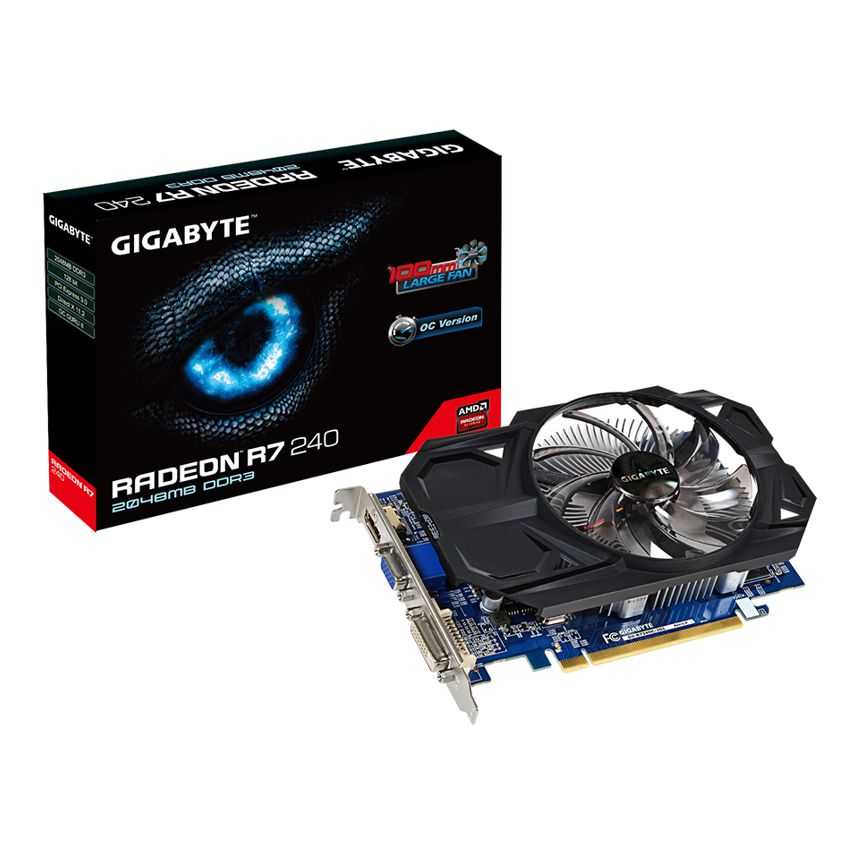 Descripción Gigabyte GV-R724OC-2GI REV 2.0. Procesador gráfico: Radeon R7 240, Máxima resolución: 2560 x 1600 Pixeles, Familia de procesadores de gráficos: ATI. Discrete graphics adapter memory: 2 GB, Tipo de memoria de adaptador gráfico: DDR3-SDRAM, Ancho de datos: 128 Bit. Tipo de interfaz: PCI Express 3.0. Versión DirectX: 11.2, Versión OpenGL: 4.2. Tipo de enfriamiento: Activo, Factor de forma: ATX