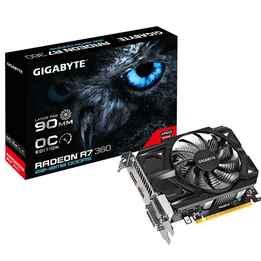 Descripción Gigabyte GV-R736OC-2GD. Familia de procesadores de gráficos: AMD, Procesador gráfico: Radeon R7 360, Máxima resolución: 4096 x 2160 Pixeles. Gráficos discretos memoria del adaptador: 2 GB, Tipo de memoria de adaptador gráfico: GDDR5-SDRAM, Ancho de datos: 128 bit. Tipo de interfaz: PCI Express 3.0. Versión DirectX: 12.0, Versión OpenGL: 4.4. Tipo de enfriamiento: Activo, Factor de forma: ATX