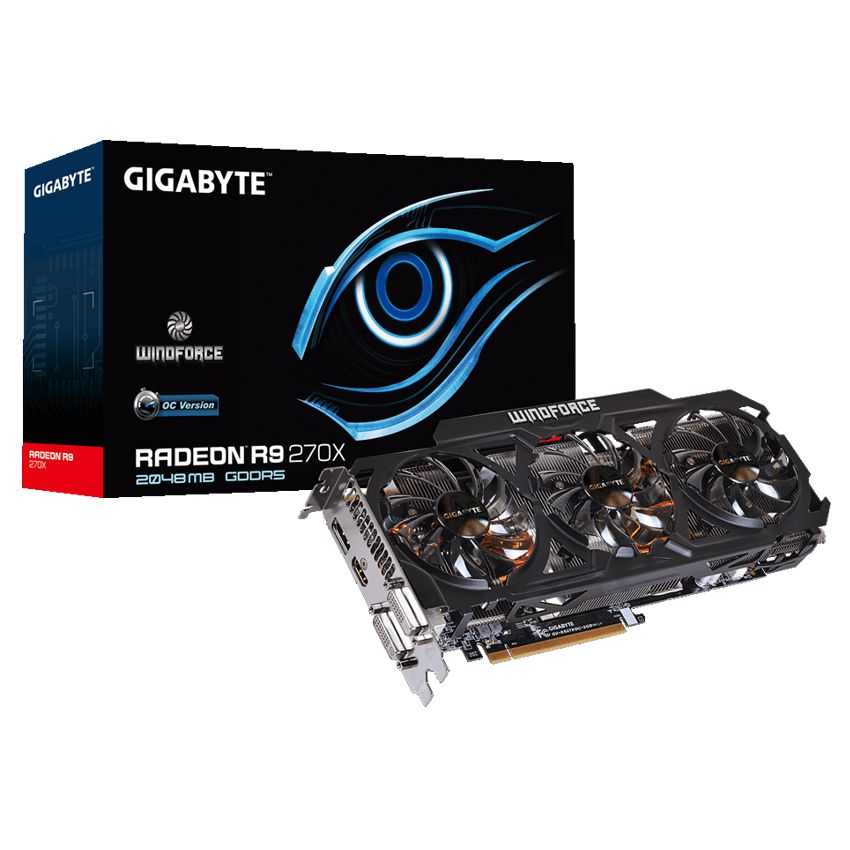 Descripción Gigabyte Radeon R9 270X, 2GB. Procesador gráfico: Radeon R9 270X, Máxima resolución: 4096 x 2160 Pixeles, Familia de procesadores de gráficos: AMD. Discrete graphics adapter memory: 2 GB, Tipo de memoria de adaptador gráfico: GDDR5-SDRAM, Ancho de datos: 256 Bit. Tipo de interfaz: PCI Express 3.0. Versión DirectX: 11.2, Versión OpenGL: 4.3. Tipo de enfriamiento: Activo, Factor de forma: ATX, Color del producto: Negro