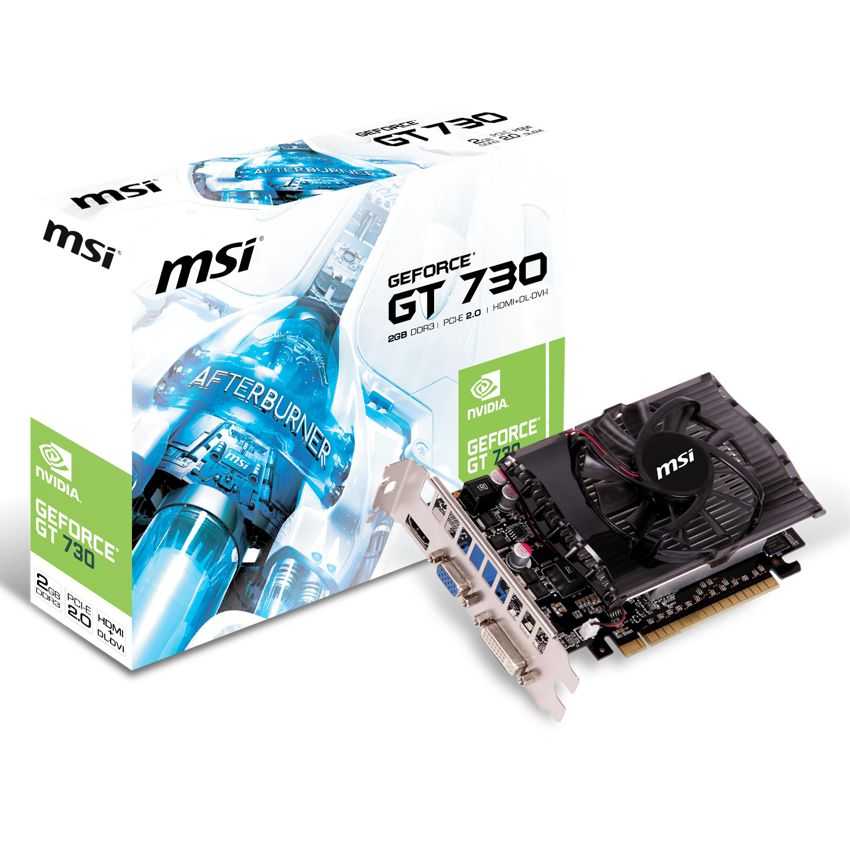 Descripción MSI GeForce GT 730 2GB. Familia de procesadores de gráficos: NVIDIA, Procesador gráfico: GeForce GT 730, Máxima resolución: 4096 x 2160 Pixeles. Gráficos discretos memoria del adaptador: 2 GB, Tipo de memoria de adaptador gráfico: DDR3-SDRAM, Ancho de datos: 128 Bit. Tipo de interfaz: PCI Express 2.0, Versión HDMI: 1.4a. Versión OpenGL: 4.4. Tipo de enfriamiento: Activo