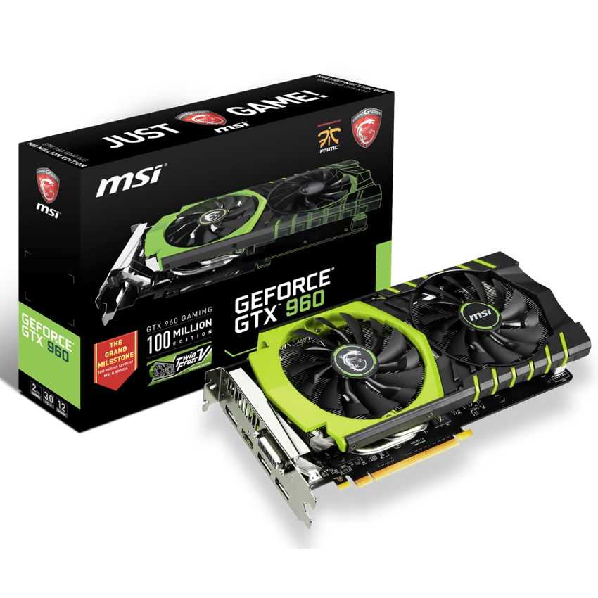 DescripciónMSI Nvidia Geforce GTX 960 2GB GDDR5. Familia de procesadores de gráficos: NVIDIA, Procesador gráfico: GeForce GTX 960, Máxima resolución: 4096 x 2160 Pixeles. Gráficos discretos memoria del adaptador: 2 GB, Tipo de memoria de adaptador gráfico: GDDR5-SDRAM, Ancho de datos: 128 Bit. Tipo de interfaz: PCI Express x16 3.0, Versión HDMI: 2.0, Versión de DisplayPort: 1.2. Versión DirectX: 12.0, Versión OpenGL: 4.4. Tipo de enfriamiento: Activo, Color del producto: Negro, VerdeEspecificacionesFamilia de procesadores de gráficos: NVIDIAProcesador gráfico: GeForce GTX 960Máxima resolución: 4096 x 2160 PixelesFrecuencia del procesador: 1241 MHzAumento de la velocidad de reloj del procesador: 1304 MHzAdaptador gráfico, RAMDAC: 400 MHzSoporte para proceso paralelo: 2-Way SLIResolución (máxima digital): 4096 x 2160 PixelesMáximas pantallas por tarjeta de video: 4FireStream: NoGráficos discretos memoria del adaptador: 2 GBTipo de memoria de adaptador gráfico: GDDR5-SDRAMAncho de datos: 128 BitVelocidad de memoria del reloj: 7010 MHzTipo de interfaz: PCI Express x16 3.0Número de puertos HDMI: 1Cantidad de puertos DVI-I: 1Cantidad de DisplayPorts: 3Versión HDMI: 2.0Puerto DVI: 1Versión de DisplayPort: 1.2Sintonizador de TV integrado: NoVersión DirectX: 12.0Versión OpenGL: 4.4Dual Link DVI: SiHDCP: SiTipo de enfriamiento: ActivoNúmero de ranuras: 2Color del producto: Negro, VerdeSuministro de energía al sistema mínimo: 400WConsumo energético: 145WConectores de energia suplementario: 1x 8-pinPeso: 860gProfundidad: 26,7 cmAltura: 13,9 cmAncho: 4,8 cm