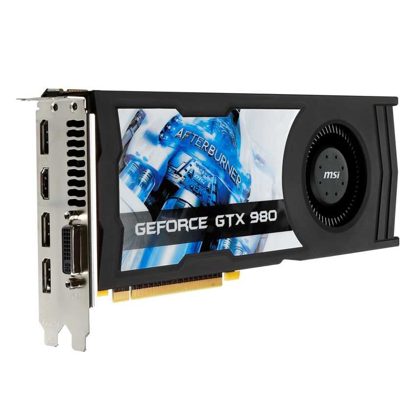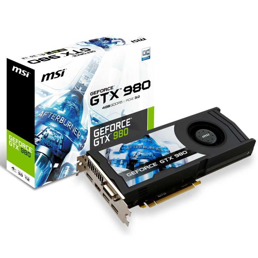 Descripción MSI GTX 980 4GD5 OCV1. Familia de procesadores de gráficos: NVIDIA, Procesador gráfico: GeForce GTX 980, Máxima resolución: 4096 x 2160 Pixeles. Gráficos discretos memoria del adaptador: 4096 GB, Tipo de memoria de adaptador gráfico: GDDR5-SDRAM, Ancho de datos: 256 Bit. Tipo de interfaz: PCI Express x16 3.0, Versión HDMI: 1.4a. Versión DirectX: 12.0, Versión OpenGL: 4.4. Tipo de enfriamiento: Activo, Color del producto: Negro