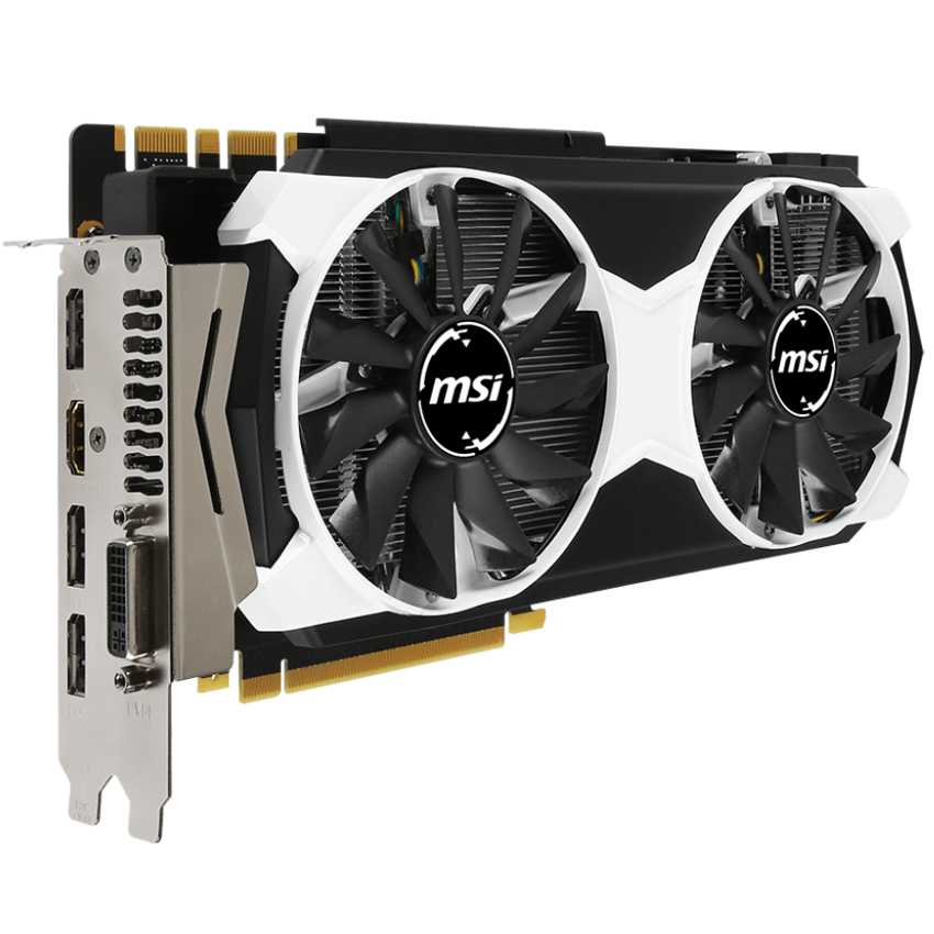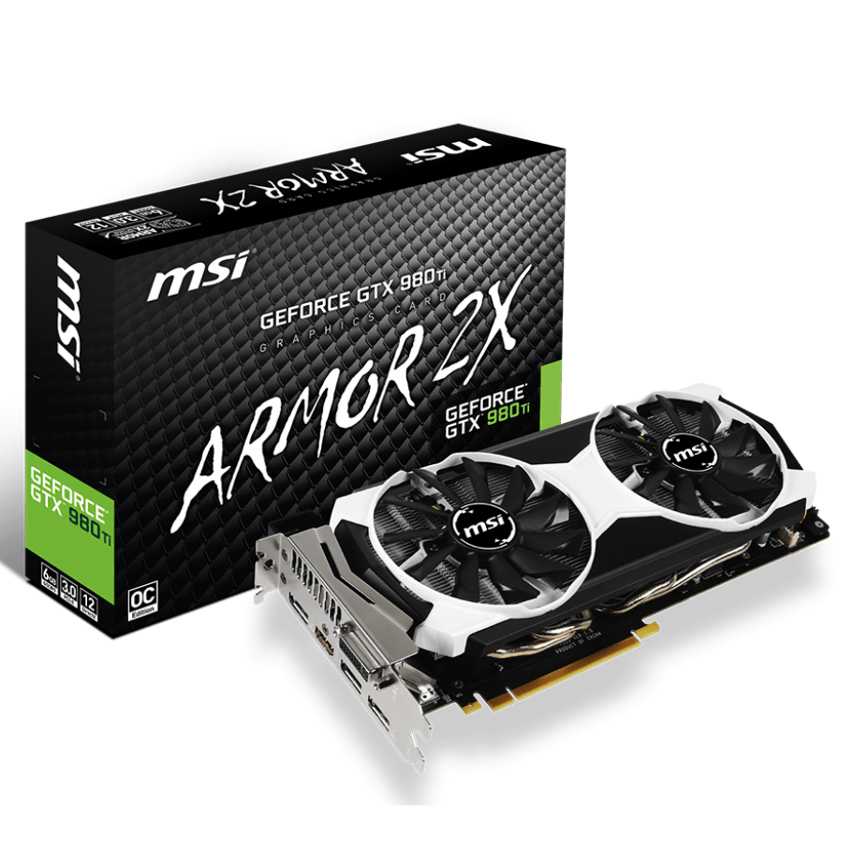 Descripción MSI GTX 980TI 6GD5T OC. Familia de procesadores de gráficos: NVIDIA, Procesador gráfico: GeForce GTX 980 Ti, Máxima resolución: 4096 x 2160 Pixeles. Gráficos discretos memoria del adaptador: 6 GB, Tipo de memoria de adaptador gráfico: GDDR5-SDRAM, Ancho de datos: 384 bit. Tipo de interfaz: PCI Express x16 3.0. Versión DirectX: 12.0, Versión OpenGL: 4.5. Tipo de enfriamiento: Activo, Factor de forma: ATX, Color del producto: Negro, Color blanco