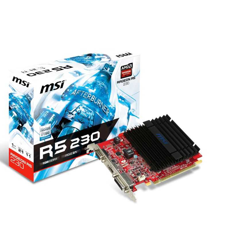 Descripción MSI R5 230 1GD3H. Familia de procesadores de gráficos: AMD, Procesador gráfico: Radeon R5 230, Máxima resolución: 4096 x 2160 Pixeles. Gráficos discretos memoria del adaptador: 1024 GB, Tipo de memoria de adaptador gráfico: GDDR2-SDRAM, Ancho de datos: 128 Bit. Versión OpenGL: 4.1. Tipo de enfriamiento: Pasivo, Color del producto: Negro, Rojo. Consumo energético: 15W