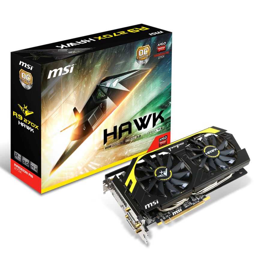 Tarjeta Grafica PCIE MSI R9 270X 2GB DDR5 HAWK Cod. Producto: A-10881   ||  Fabricante: MSI Part Number: 912-V303-006    Stock: 0 Unidades Entrega en el Día ver condiciones Envio: Gratis Descatalogado