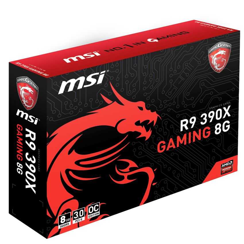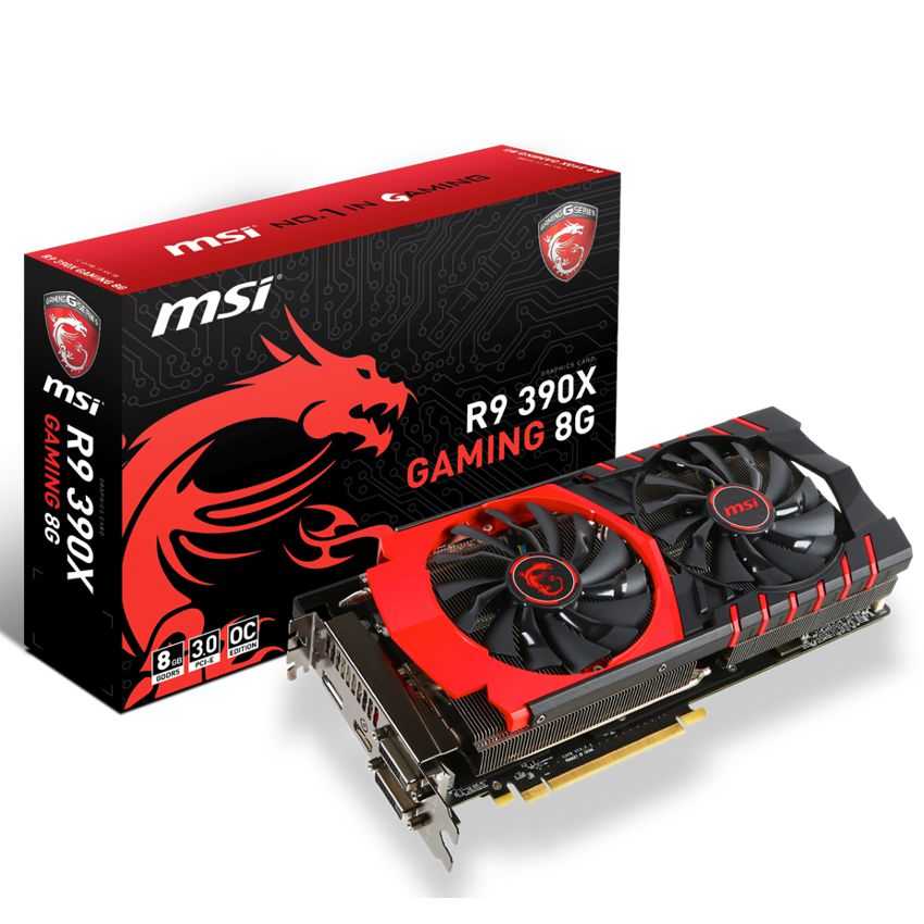 Descripción MSI R9 390X GAMING 8G. Familia de procesadores de gráficos: AMD, Procesador gráfico: Radeon R9 390X, Máxima resolución: 4096 x 2160 Pixeles. Gráficos discretos memoria del adaptador: 8 GB, Tipo de memoria de adaptador gráfico: GDDR5-SDRAM, Ancho de datos: 512 Bit. Tipo de interfaz: PCI Express x16 3.0, Versión HDMI: 1.4a, Versión de DisplayPort: 1.2. Versión OpenGL: 4.4. Tipo de enfriamiento: Activo, Color del producto: Negro, Rojo