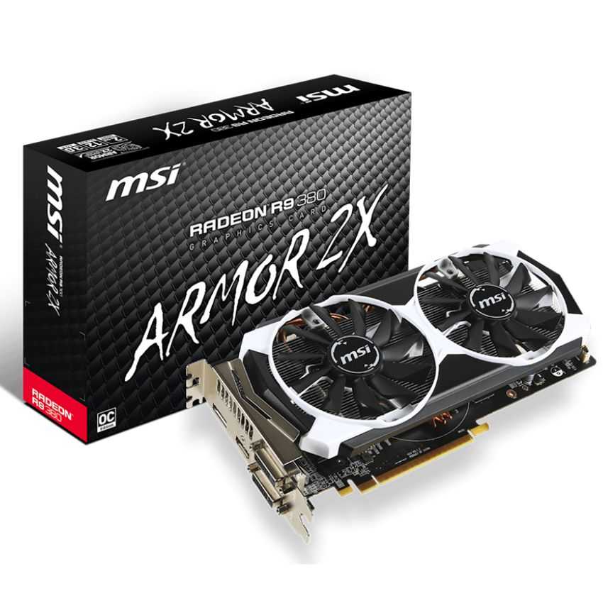 Descripción MSI R9 380 2GD5T OC. Familia de procesadores de gráficos: AMD, Procesador gráfico: Radeon R9 380, Máxima resolución: 4096 x 2160 Pixeles. Gráficos discretos memoria del adaptador: 2048 GB, Tipo de memoria de adaptador gráfico: GDDR5-SDRAM, Ancho de datos: 256 Bit. Tipo de interfaz: PCI Express x16 3.0, Versión HDMI: 1.4a, Versión de DisplayPort: 1.2. Versión DirectX: 12.0, Versión OpenGL: 4.4. Tipo de enfriamiento: Activo, Factor de forma: ATX, Color del producto: Negro, Plata
