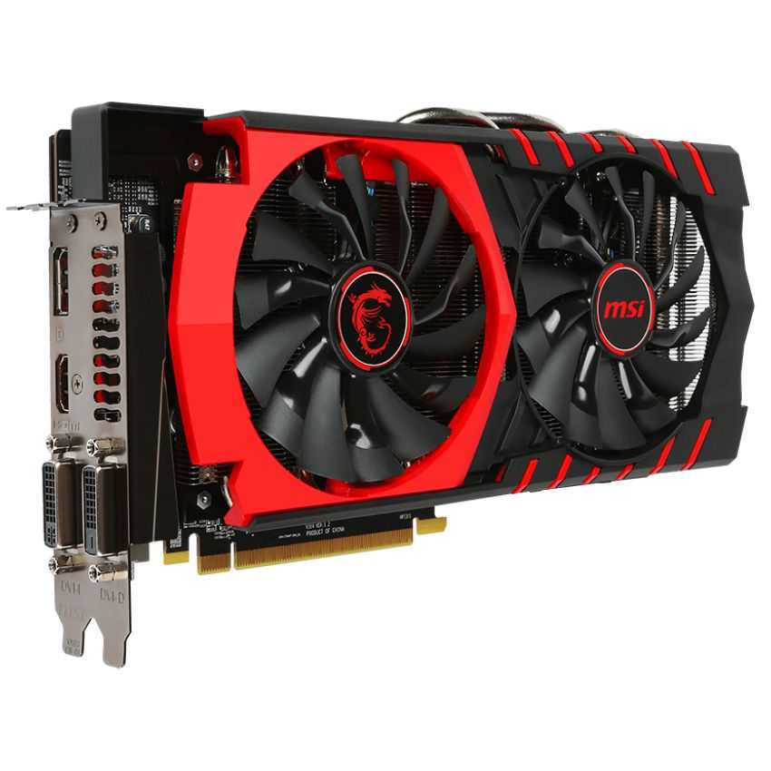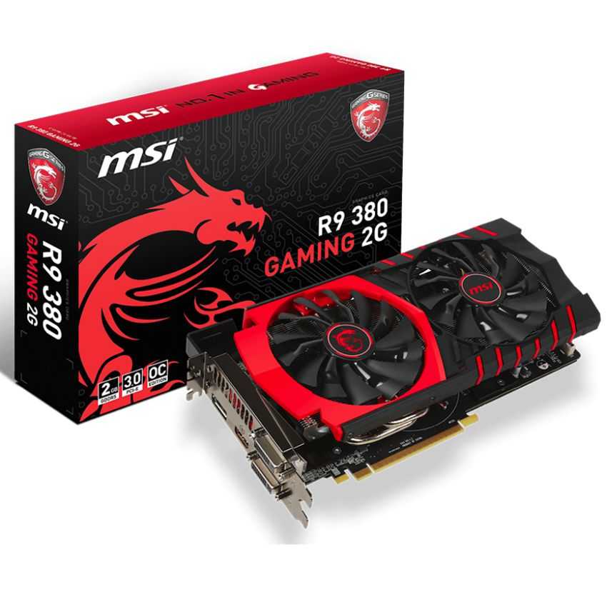 Descripción MSI R9 380 GAMING 2G. Familia de procesadores de gráficos: AMD, Procesador gráfico: Radeon R9 380, Máxima resolución: 4096 x 2160 Pixeles. Gráficos discretos memoria del adaptador: 2 GB, Tipo de memoria de adaptador gráfico: GDDR5-SDRAM, Ancho de datos: 256 Bit. Tipo de interfaz: PCI Express x16 3.0, Versión HDMI: 1.4a, Versión de DisplayPort: 1.2. Versión DirectX: 12.0, Versión OpenGL: 4.4. Tipo de enfriamiento: Activo, Factor de forma: ATX, Color del producto: Negro, Rojo