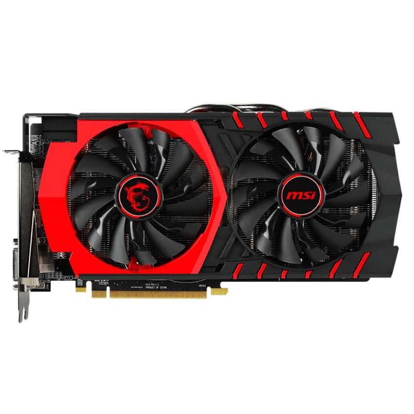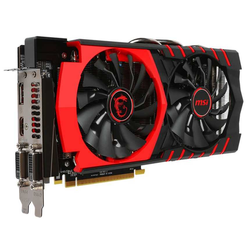 Descripción MSI R9 380 GAMING 4G. Familia de procesadores de gráficos: AMD, Procesador gráfico: Radeon R9 380, Máxima resolución: 4096 x 2160 Pixeles. Gráficos discretos memoria del adaptador: 4 GB, Tipo de memoria de adaptador gráfico: GDDR5-SDRAM, Ancho de datos: 256 bit. Tipo de interfaz: PCI Express x16 3.0, Versión HDMI: 1.4a, Versión de DisplayPort: 1.2. Versión DirectX: 12.0, Versión OpenGL: 4.4. Tipo de enfriamiento: Activo, Factor de forma: ATX, Color del producto: Negro, Rojo