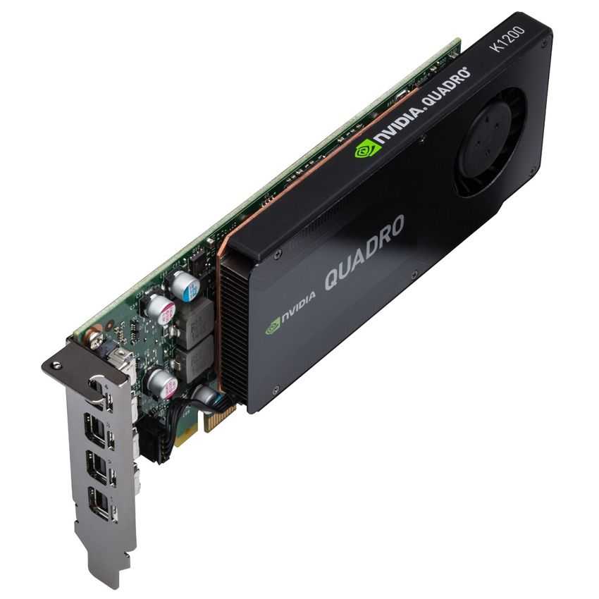 Descripción PNY VCQK1200DVI-PB LP. Familia de procesadores de gráficos: NVIDIA, Procesador gráfico: Quadro K1200, Máxima resolución: 4096 x 2160 Pixeles. Gráficos discretos memoria del adaptador: 4 GB, Tipo de memoria de adaptador gráfico: GDDR5-SDRAM, Ancho de datos: 128 bit. Tipo de interfaz: PCI Express x16 2.0, Versión de DisplayPort: 1.2. Versión DirectX: 12.0, Versión Shader model: 5.0, Versión OpenGL: 4.5. Tipo de enfriamiento: Activo, Factor de forma: LP