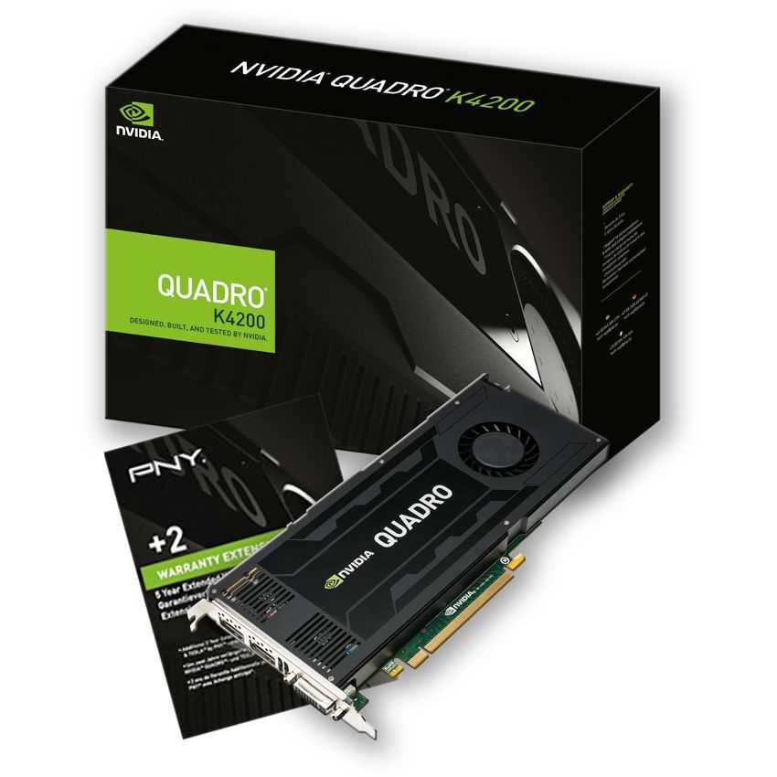 Descripción PNY VCQK4200-PB. Familia de procesadores de gráficos: NVIDIA, Procesador gráfico: Quadro K4200, Máxima resolución: 3840 x 2160 Pixeles. Gráficos discretos memoria del adaptador: 4 GB, Tipo de memoria de adaptador gráfico: GDDR5-SDRAM, Ancho de datos: 256 Bit. Tipo de interfaz: PCI Express 2.0, Versión de DisplayPort: 1.2. Versión Shader model: 5.0, Versión OpenGL: 4.4. Tipo de enfriamiento: Activo