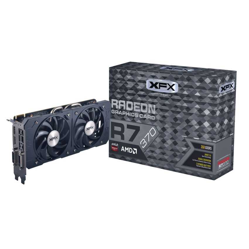 Descripción XFX R7-370P-2DF5. Familia de procesadores de gráficos: AMD, Procesador gráfico: Radeon R7 370, Máxima resolución: 4096 x 2160 Pixeles. Gráficos discretos memoria del adaptador: 2 GB, Tipo de memoria de adaptador gráfico: GDDR5-SDRAM, Ancho de datos: 256 Bit. Tipo de interfaz: PCI Express 3.0, Versión HDMI: 1.4a, Versión de DisplayPort: 1.2. Versión DirectX: 12.0. Tipo de enfriamiento: Activo, Factor de forma: ATX, Color del producto: Negro