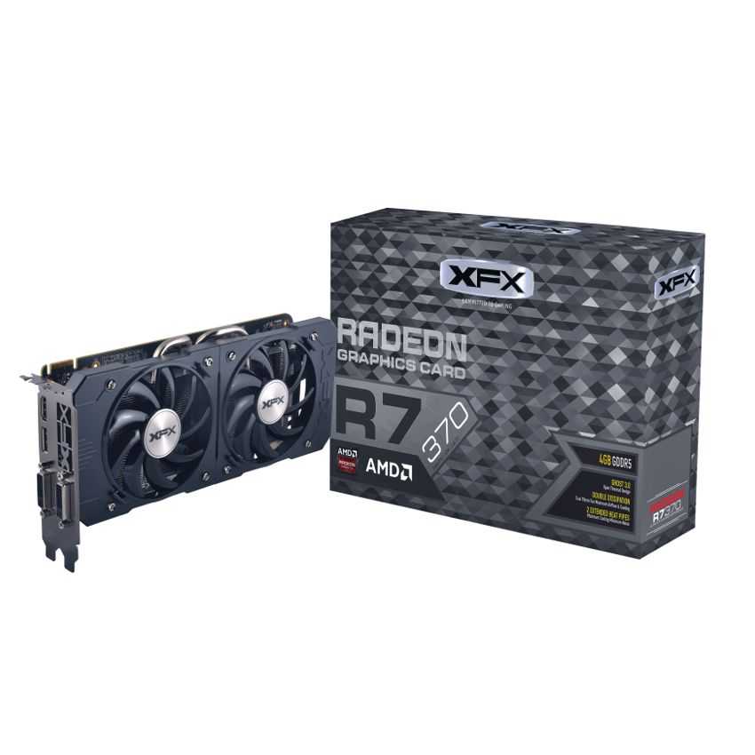 Descripción XFX R7-370P-4DF5. Familia de procesadores de gráficos: AMD, Procesador gráfico: Radeon R7 370, Máxima resolución: 4096 x 2160 Pixeles. Gráficos discretos memoria del adaptador: 4 GB, Tipo de memoria de adaptador gráfico: GDDR5-SDRAM, Ancho de datos: 256 Bit. Tipo de interfaz: PCI Express 3.0, Versión HDMI: 1.4a, Versión de DisplayPort: 1.2. Versión DirectX: 12.0. Tipo de enfriamiento: Activo, Factor de forma: ATX, Color del producto: Black