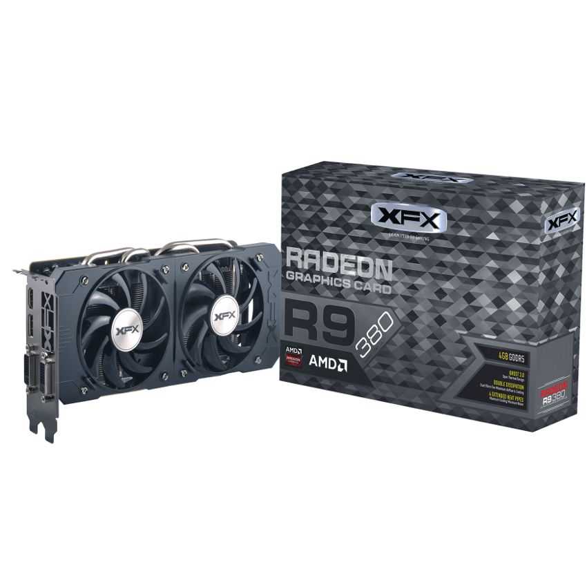 Descripción XFX R9-380P-4DF5. Familia de procesadores de gráficos: AMD, Procesador gráfico: Radeon R9 380, Máxima resolución: 4096 x 2160 Pixeles. Gráficos discretos memoria del adaptador: 4 GB, Tipo de memoria de adaptador gráfico: GDDR5-SDRAM, Ancho de datos: 256 Bit. Tipo de interfaz: PCI Express 3.0, Versión HDMI: 1.4a, Versión de DisplayPort: 1.2. Versión DirectX: 12.0. Tipo de enfriamiento: Activo, Factor de forma: ATX, Color del producto: Negro