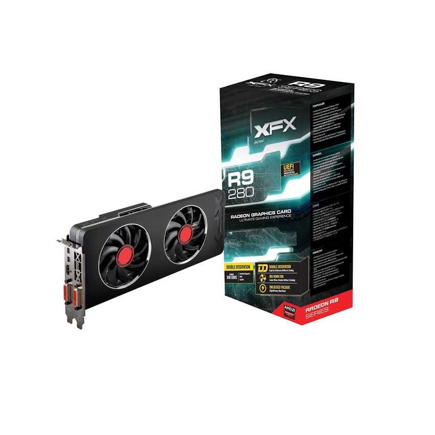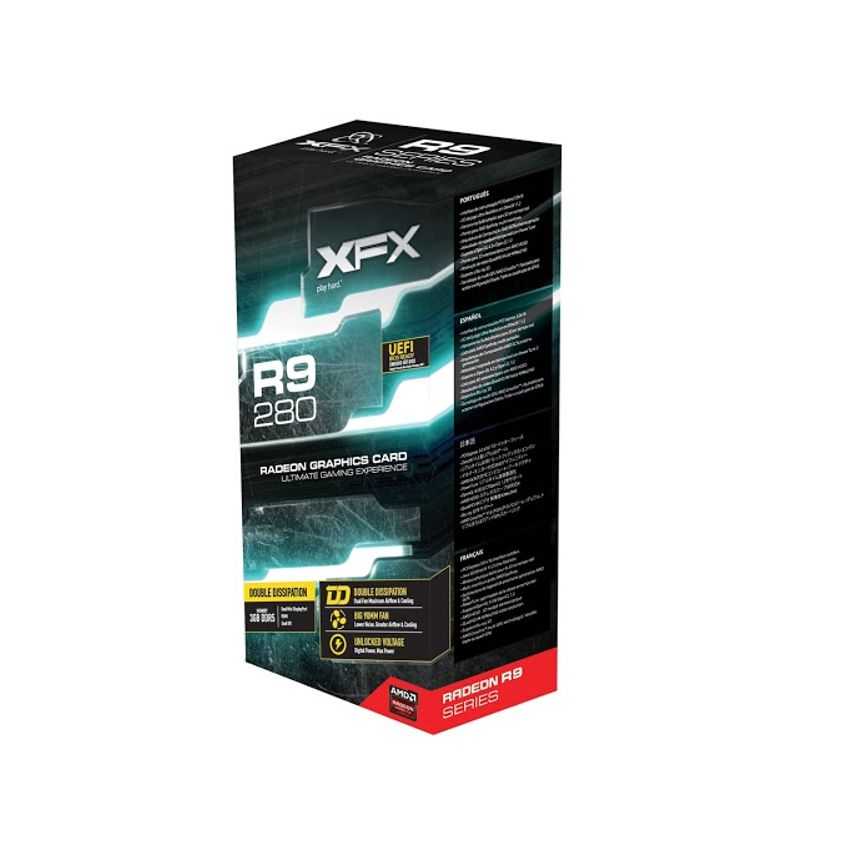 Descripción XFX Radeon R9 280, 3GB. Procesador gráfico: Radeon R9 280, Máxima resolución: 4096 x 2160 Pixeles, Familia de procesadores de gráficos: AMD. Discrete graphics adapter memory: 3 GB, Tipo de memoria de adaptador gráfico: GDDR5-SDRAM, Ancho de datos: 384 Bit. Tipo de interfaz: PCI Express 3.0, Versión HDMI: 1.4a, Versión de DisplayPort: 1.2. Versión DirectX: 11.2, Versión Shader model: 5.0, Versión OpenGL: 4.3. Tipo de enfriamiento: Activo, Color del producto: Negro