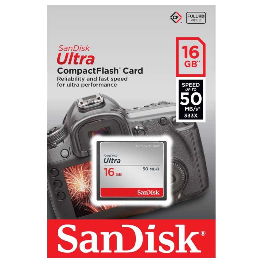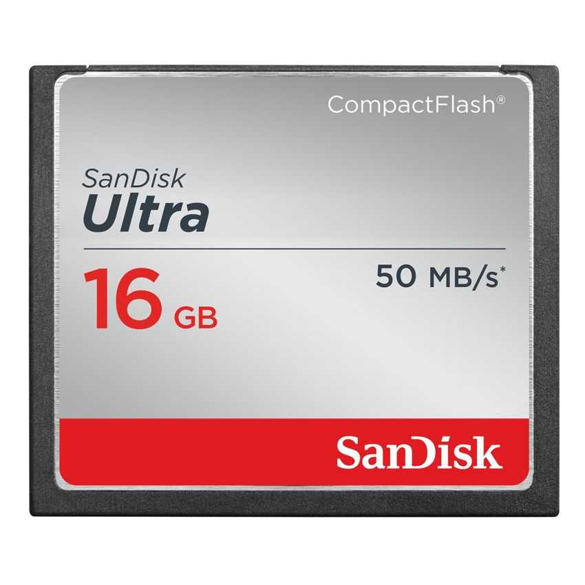Descripción Sandisk Ultra CF 16GB 50MB/s. Capacidad: 16 GB, Tipo de tarjeta flash: CompactFlash (CF), Velocidad de lectura: 50 MB/s. Color del producto: Negro, Gris