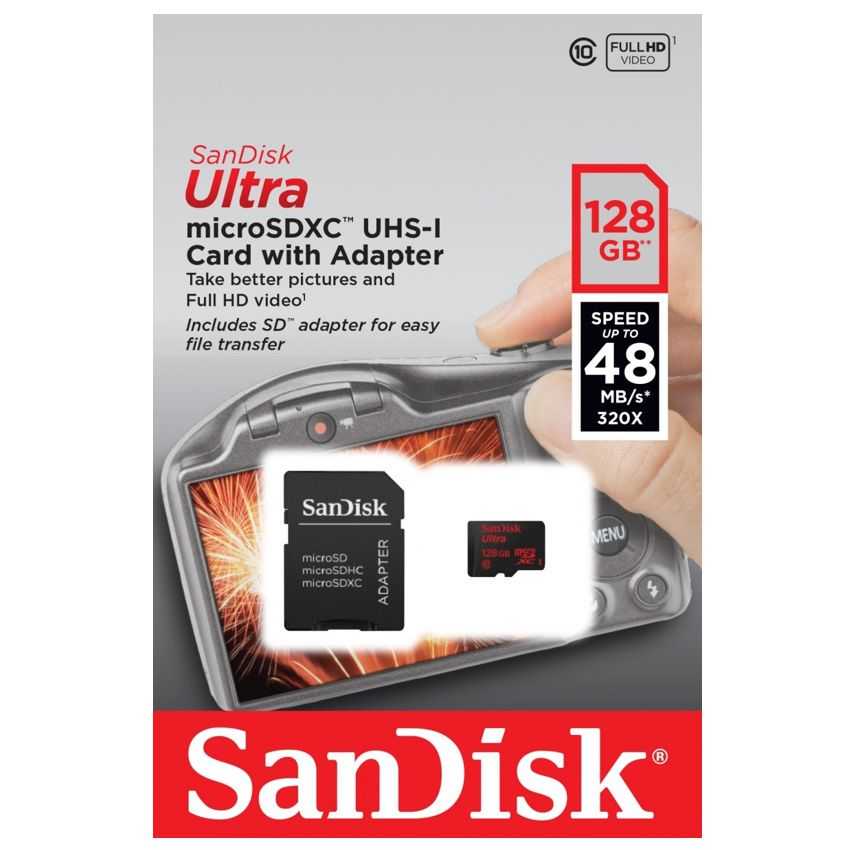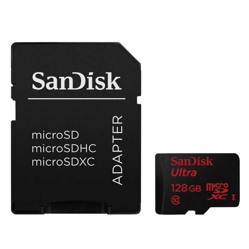 Descripción Sandisk SDSDQUIN-128G-G4. Capacidad: 128 GB, Tipo de tarjeta flash: Micro Secure Digital Extended Capacity (MicroSDXC), Tipo de memoria interna: UHS. Color del producto: Negro, Funciones de protección: Resistente al calor, Resistente a golpes, Resistente al agua, A prueba de rayos X. Ancho: 1,499 cm, Profundidad: 1,092 cm, Altura: 1,02 mm (0.0402"). Adaptador de memoria incluido: SD