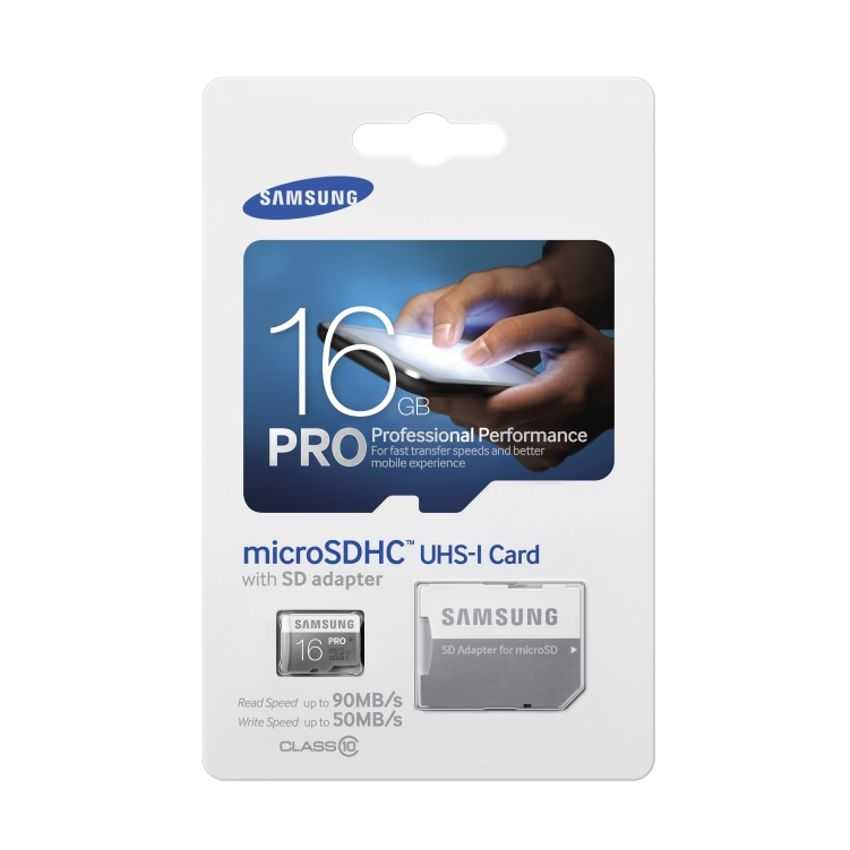 DescripciónSamsung 16GB, MicroSDHC PRO. Capacidad: 16 GB, Tipo de tarjeta flash: Micro Secure Digital High-Capacity (MicroSDHC), Velocidad de lectura: 90 MB/s. Color del producto: Gris, Color blanco, Funciones de protección: Resistente al agua. Ancho: 1,5 cm, Profundidad: 1 mm, Altura: 1,1 cm. Adaptador de memoria incluido: SD, Tipo de embalaje: AmpollaEspecificacionesCapacidad: 16 GBTipo de tarjeta flash: Micro Secure Digital High-Capacity (MicroSDHC)Clase de memoria flash: 10Velocidad de lectura: 90 MB/sVelocidad de escritura: 50 MB/sTipo de memoria interna: UHSColor del producto: Gris, Color blancoFunciones de protección: Resistente al aguaIntervalo de temperatura operativa: -25 - 85 °CAncho: 1,5 cmProfundidad: 1 mmAltura: 1,1 cmAdaptador de memoria incluido: SDCantidad por paquete: 1Tipo de embalaje: Ampolla
