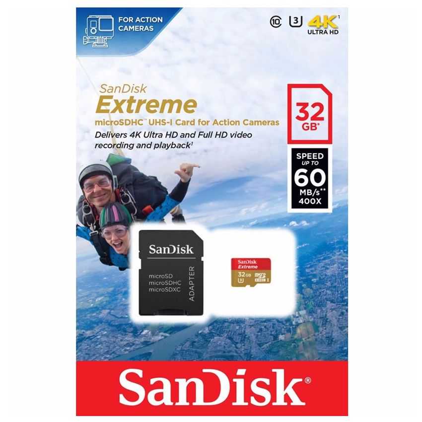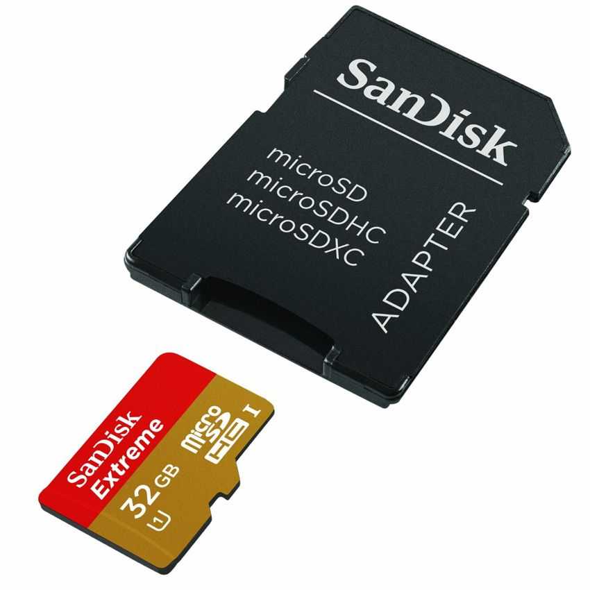 Descripción Sandisk 32GB Extreme microSDXC UHS-I. Capacidad: 32 GB, Tipo de tarjeta flash: Micro Secure Digital High-Capacity (MicroSDHC), Velocidad de lectura: 60 MB/s. Color del producto: Oro, Rojo. Ancho: 1,499 cm, Profundidad: 1,02 mm (0.0402"), Altura: 1,092 cm