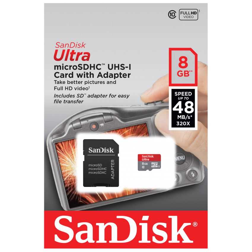 Especificaciones Capacidad: 8 GB Tipo de tarjeta flash: Micro Secure Digital (MicroSD) Clase de memoria flash: 10 Tipo de memoria interna: UHS Adaptador de memoria incluido: SD Cantidad por paquete: 1