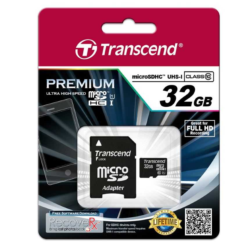 Descripción Transcend 32GB microSDHC Class 10 UHS-I. Capacidad: 32 GB, Tipo de tarjeta flash: Micro Secure Digital High-Capacity (MicroSDHC). Durabilidad: 10000 ciclos por sector lógico. Color del producto: Negro. Voltaje de entrada: 2.7 - 3.6V. Ancho: 1.1 cm, Profundidad: 1.5 cm, Altura: 1 mm
