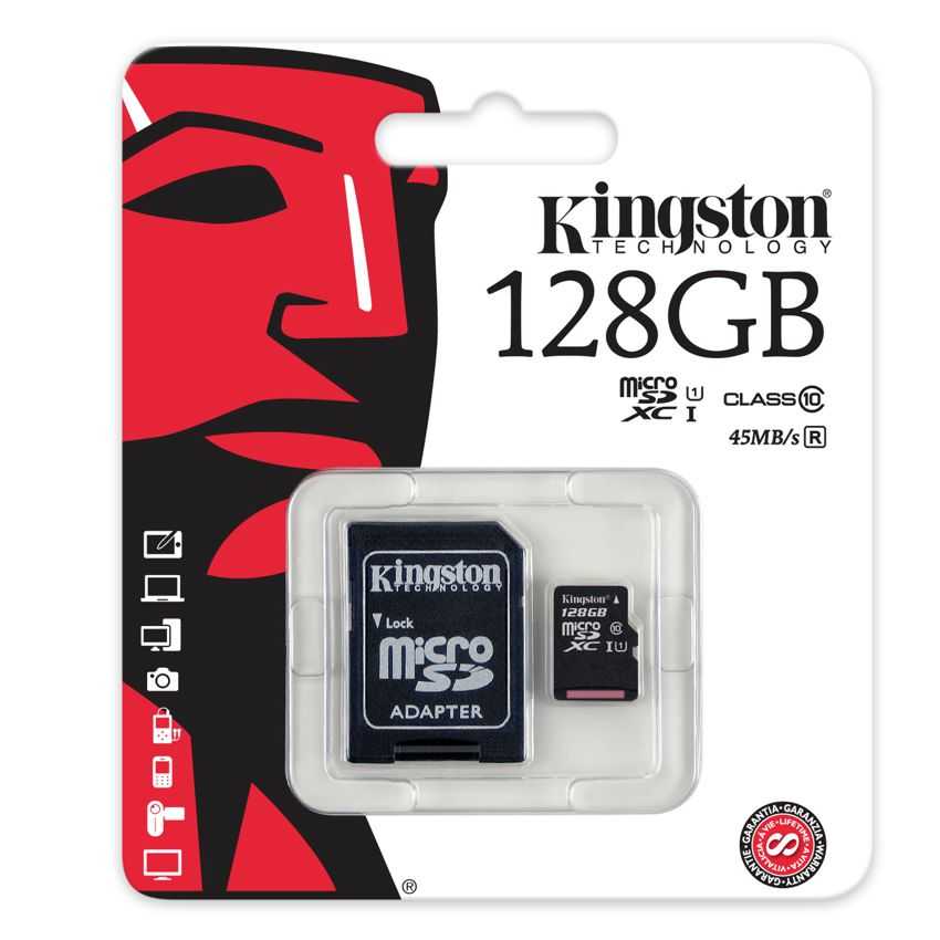 Descripción Velocidades de UHS-I en una tarjeta pequeña y resistente. Las tarjetas microSDHC/microSDXC UHS-I Clase 10 de Kingston alcanzan velocidades de UHS-I Clase 10 ?45 MB/s de lectura y 10 MB/s de escritura?, lo cual las hace ideales para fotógrafos que plasman desde imágenes fijas hasta niños y mascotas en movimiento. También son ideales para vídeo HD de calidad cinematográfica (1080 píxeles)* y reducen el intervalo entre tomas en comparación con las tarjetas de Clase 4. La tarjeta SD más pequeña, microSDHC/microSDXC UHS-I Clase 10 es la opción de almacenamiento ampliable de serie de numerosas tabletas, smartphones y videocámaras de acción. También pueden utilizarse conjuntamente con el adaptador de tarjeta SD opcional para dispositivos de alojamiento de SDHC/SDXC de tamaño estándar. Diseñada para tolerar las condiciones más desfavorables, esta versátil tarjeta ha sido sometida a ensayos de impermeabilidad**, temperaturas extremas***, golpes y vibraciones****, y rayos X*****. Sus capacidades, de 8 GB a 128 GB, le pondrán fácil encontrar la tarjeta adecuada para sus necesidades, con espacio para miles de fotos de alta resolución y horas de vídeo******.