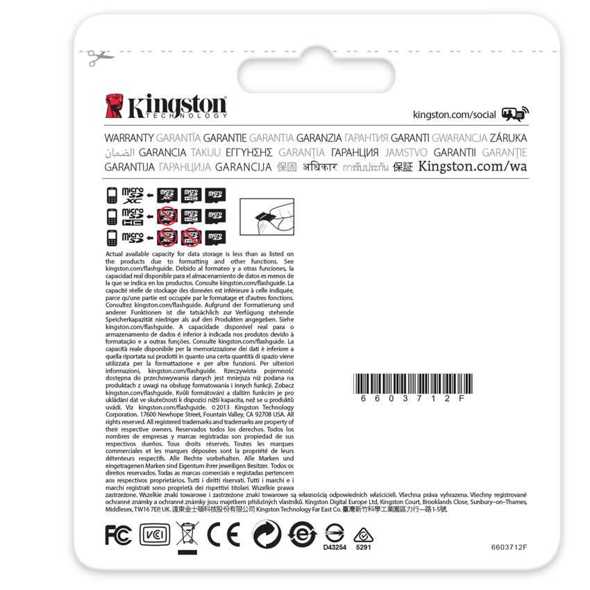 Descripción Las tarjetas microSDHC/SDXC de Kingston ofrecen velocidades de Clase 4 y Clase 10 y capacidades que varían de 4GB a 128GB, que permiten ofrecer un rendimiento óptimo con dispositivos que utilizan microSDHC/SDXC. La tecnología UHS-I proporciona velocidades de interfaz del bus más altas para optimizar la reproducción y transferencia de archivos Almacene más canciones, vídeos, imágenes, juegos y todo lo necesario en la era en la que la movilidad es clave. Están respaldadas por una garantía de por vida, soporte técnico gratuito y la legendaria fiabilidad de Kingston®.