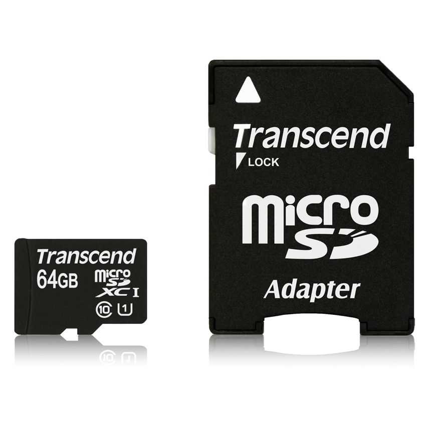 Descripción Transcend 64GB MicroSDXC Class 10. Memoria interna: 65536 MB, Tipo de tarjeta flash: Micro Secure Digital Extended Capacity (MicroSDXC), Velocidad de lectura: 45 MB/s. Peso: 0.4 g, Ancho: 15 mm, Profundidad: 1 mm