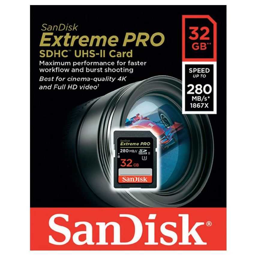 Descripción Sandisk SDHC 32GB. Capacidad: 32 GB, Tipo de tarjeta flash: Secure Digital High-Capacity (SDHC), Velocidad de lectura: 280 MB/s. Color del producto: Negro
