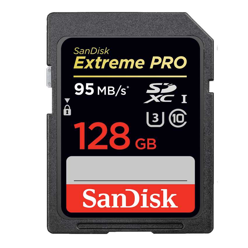 Descripción Sandisk 128GB Extreme PRO SDXC. Capacidad: 128 GB, Tipo de tarjeta flash: SDXC, Clase de memoria flash: Class 10. Color del producto: Negro. Ancho: 2,4 cm, Profundidad: 3,2 cm, Altura: 2,1 mm