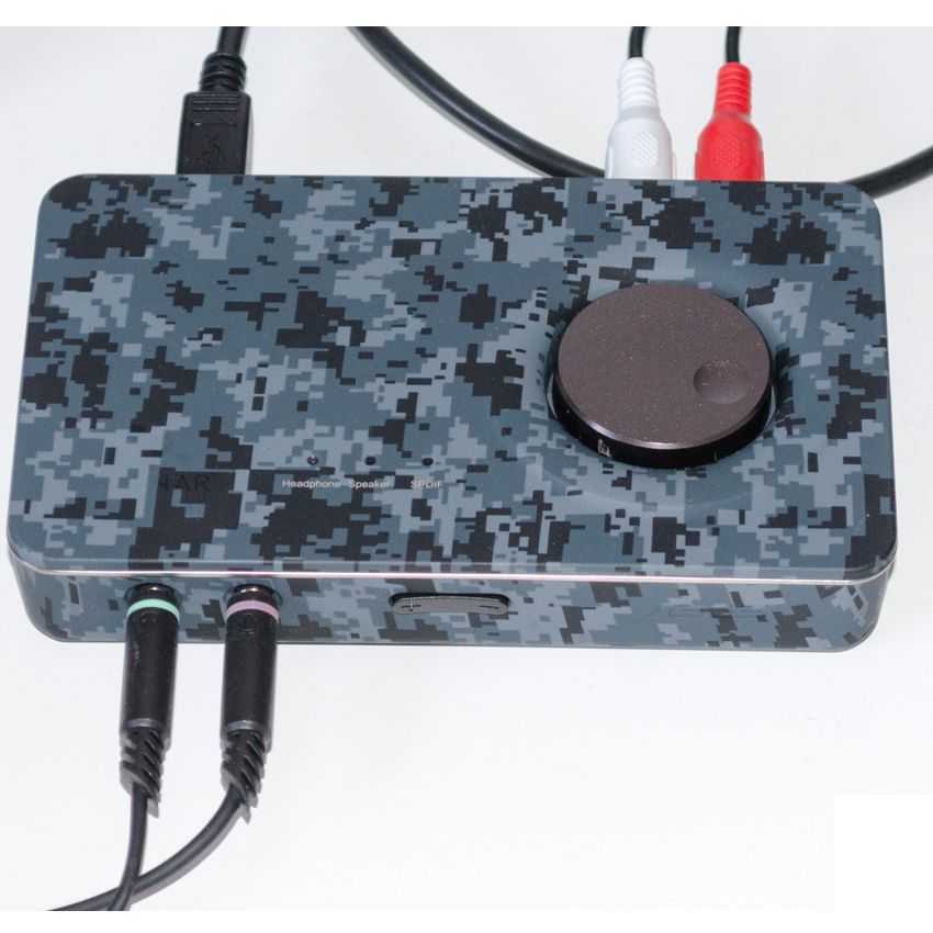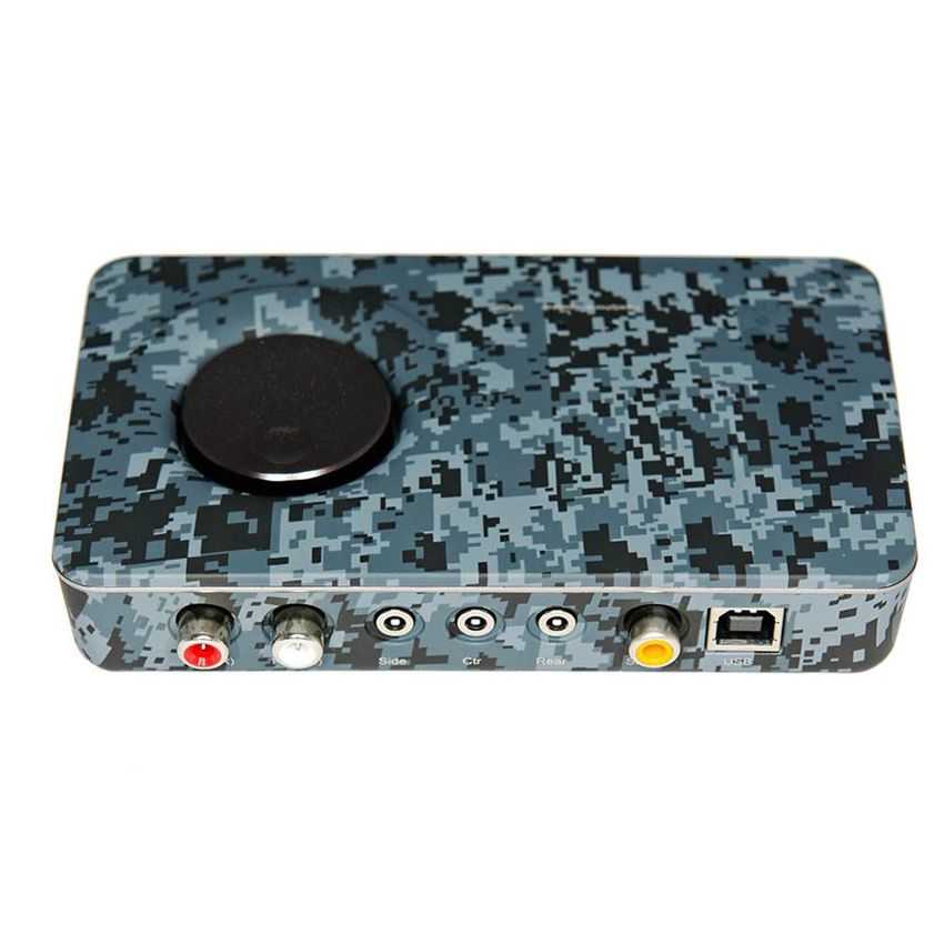 Descripción Compacta tarjeta de audio USB con 7.1 canales y un acabado de camuflaje