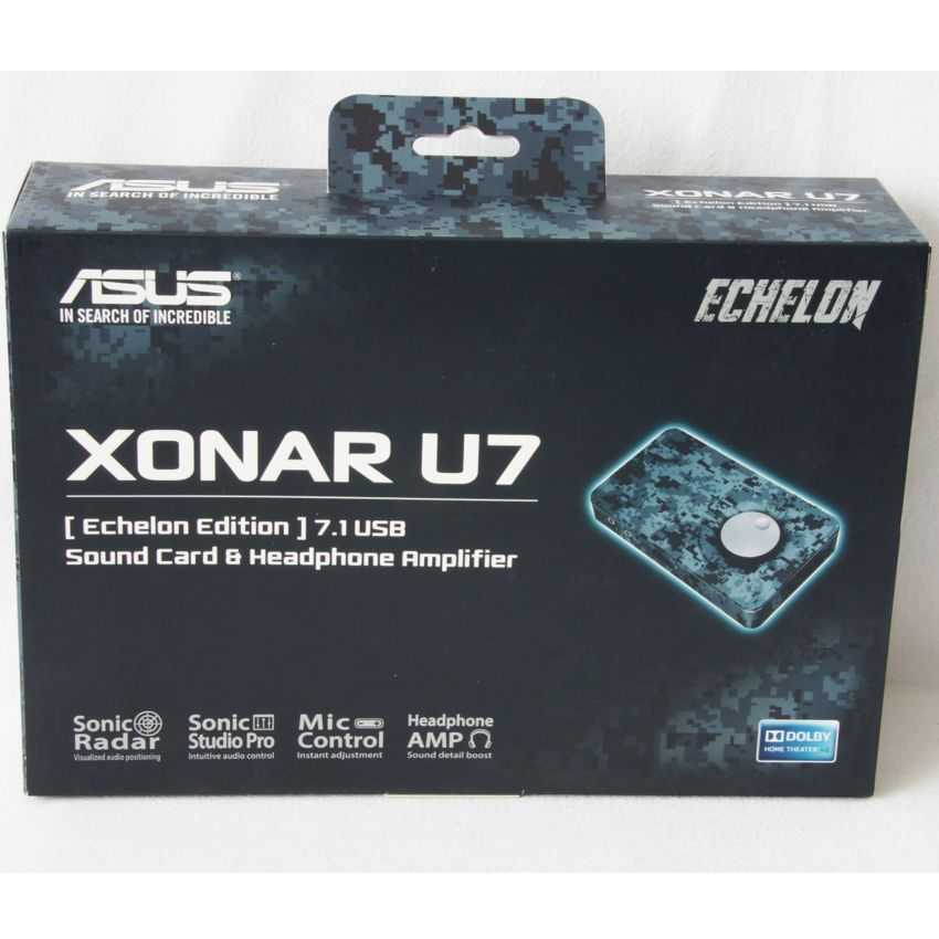 La Xonar U7 Echelon Edition es una tarjeta USB de audio para gaming que hereda las bondades de sonido de la premiada Xonar U7 y añade el acabado de camuflaje de los productos de la edición Echelon. Los ingenieros de ASUS han añadido cantidad de funciones para ayudarte a ver, oír y ganar.