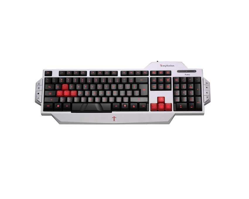 - Diseño llamativo y elegante en blanco Templarius. - Teclas retro iluminadas LED en rojo para un funcionamiento correcto en cualquier condición de iluminación. - Teclado de tamaño optimizado para una mejor gestión del escritorio. - Todas las teclas son desmontables para intercambiar su posición y permitir una limpieza en profundidad del teclado. - 8 teclas adicionales desmontables Gaming diseñadas para un mejor rendimiento en juegos. - Pulsación de teclas perfecta optimizada para Gaming: altura de teclas optimizada para Gaming, pulsadores especialmente seleccionados por su presión y respuesta para un rendimiento extremo. - 8 teclas multimedia para el control total del sistema. - Diseñado para durar y rendir gracias a su cable trenzado de doble nylon y el conector USB bañado en oro de 18 quilates. - Compatible con: WIN98SE / WIN ME / WIN 2000 / WIN XP / WIN VISTA / WIN 7 / MAC OSX / LINUX. - Sin drivers adicionales. - Luz LED con interruptor ON/OFF en tecla “Scroll Lock” para ahorro de energía un funcionamiento práctico en reposo. - Vida Útil: + de 10.000.000 de pulsaciones.