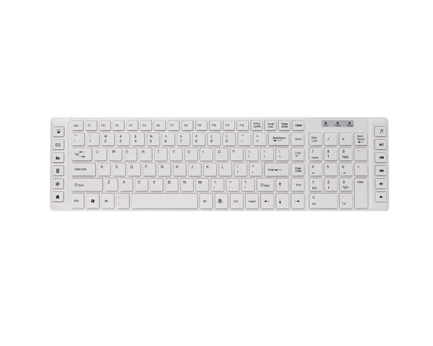 Teclado de 105 teclas más 12 teclas de acceso dinámico de bajo perfil. Teclas chocolate suaves que proporcionan un extremo confort y una estética fina y agradable.