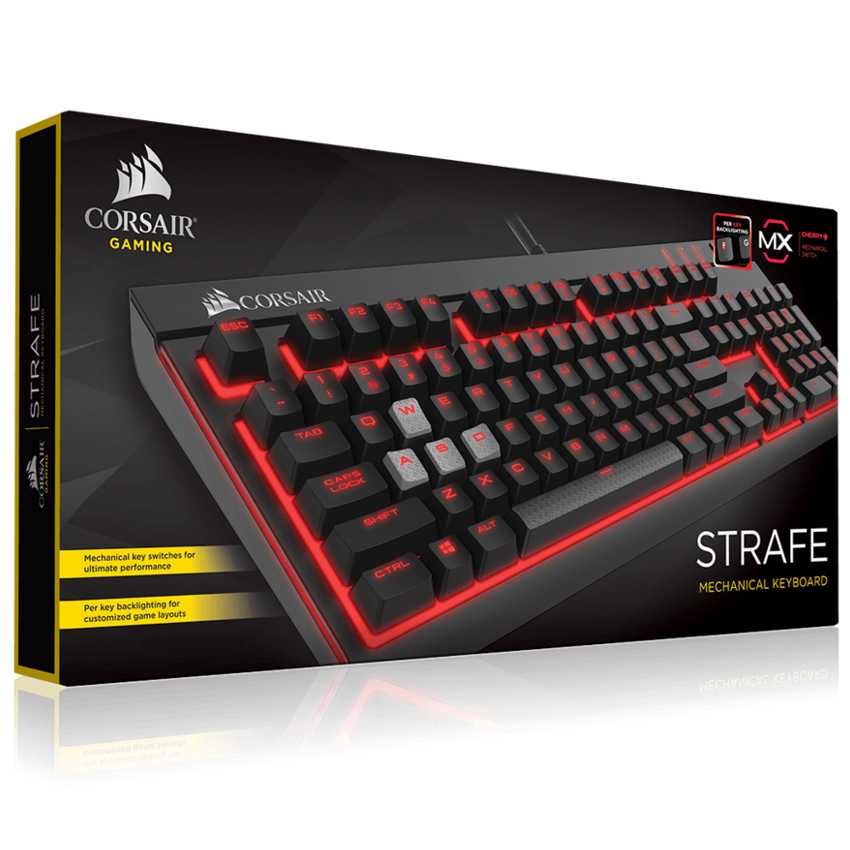 Descripción Corsair STRAFE. Interfaz del dispositivo: USB, Uso recomendado: Hogar, Diseño de teclado: QWERTY. Color del producto: Negro, Color de luz de fondo: Rojo, Coloración de superficie: Monótono. Alimentación: USB. Sistema operativo Windows soportado: Windows 7 Enterprise, Windows 8, Windows 10 Education, Windows 7 Enterprise x64, Windows 8 Enterpris. Dimensiones de teclado (Ancho x Profundidad x Altura): 448 x 170 x 40 mm, Peso del teclado: 1,35 kg