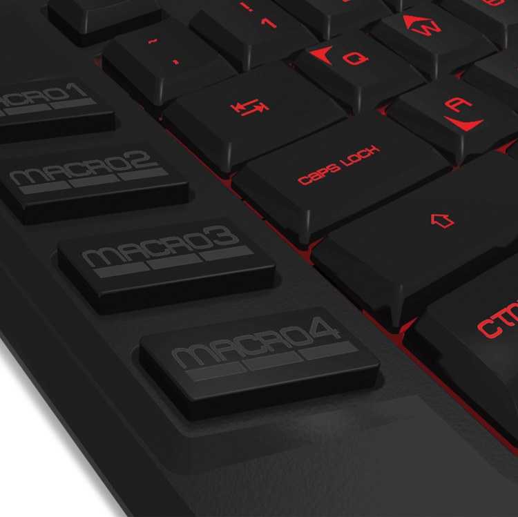 Un diseño estilizado y agresivo, con iluminación interior y sobre las teclas, combinado con características especiales para los juegos hacen del Blade un arma perfecta de juego, afilada como un cuchillo.Los 128 Kb de memoria junto con el software incluido permite al usuario personalizar por completo el teclado: hasta 50 macros diferentes en 5 perfiles.
