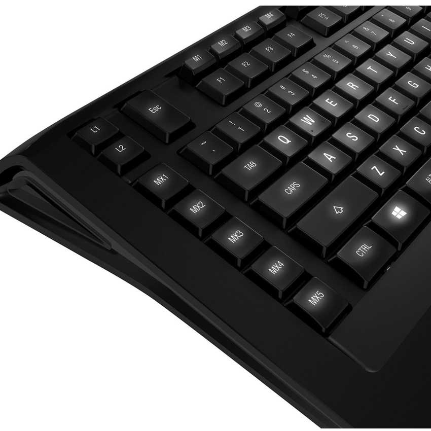 Especificaciones Interfaz del dispositivo: USB Uso recomendado: Juego Tecnología de conectividad: Alámbrico Utilizar con: PC/server Formato del teclado: Estándar Estilo de teclado: Derecho Teclas de acceso directo: Si Teclas rápidas programables: Si Teclas de Windows: Si Descansa muñecas: Si Altura de teclado ajustable: Si Teclado numérico: Si Vida útil de teclas: 5 millón de caracteres Teclado de tamaño completo: Si Color del producto: Negro Retroiluminación: Si Color de luz de fondo: Color blanco Coloración de superficie: Monótono Conectar y usar (Plug and Play): Si Indicadores LED: Si Alimentación: USB Ratón incluido: No Sistema operativo Windows soportado: Si Sistema operativo MAC soportado: Mac OS X 10.0 Cheetah, Mac OS X 10.1 Puma, Mac OS X 10.10 Yosemite, Mac OS X 10.2 Jaguar, Mac OS X 10.3 Panther, Mac OS X 10.4 Tiger, Mac OS X 10.5 Leopard, Mac OS X 10.6 Snow Leopard, Mac OS X 10.7 Lion, Mac OS X 10.8 Mountain Lion, Mac OS X 10.9 Mavericks Sistema operativo Linux soportado: Si Número de productos incluidos: 1 pieza(s)