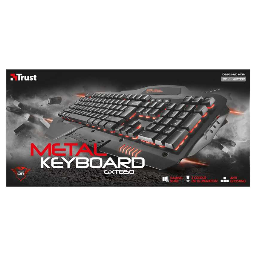 Descripción Teclado para juegos de tamaño completo, iluminación por LED y placa superior metálica genuina
