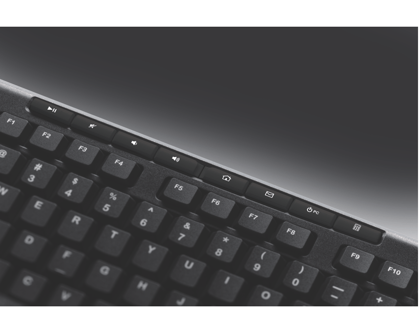 Device interface: RF Wireless Propósito: PC Recommended usage: Office Keyboard style: recto Keyboard form factor: Estándar Teclas de acceso directo: Si Spill resistant keyboard: Si Ratón incluido: No Frecuencia de banda: 2.4 GHz Alcance inalámbrico: 10 m Wireless receiver interface: USB Unifying receiver: Si Receiver type: nano Enchufar y usar: Si Color: Negro, Blanco Indicadores LED: Si Sistema operativo Windows soportado: Si USB: Si Power source type: Baterías Tecnología de batería: Alcalino Numero de baterías soportadas: 2 Tipo de batería: AAA Keyboard battery type: AAA Number of batteries (keyboard): 2 Receiver included: Si Pilas incluidas: Si User guide: Si Mínimos requerimientos de sistema: USB Sistemas operativos compatibles: Windows XP\nWindows Vista\nWindows 7