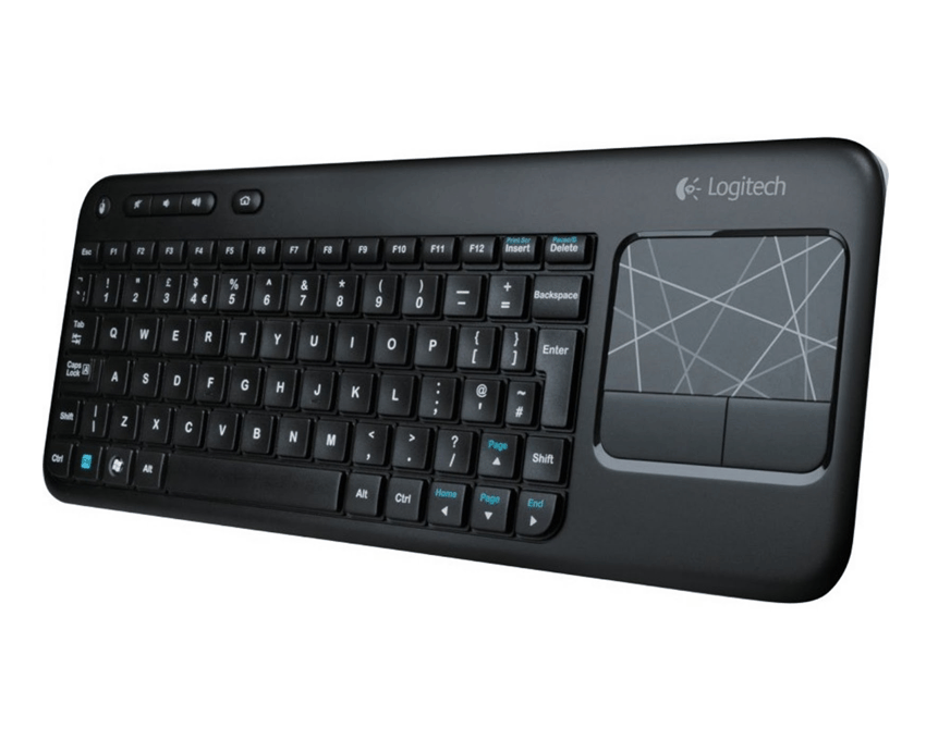 Wireless Touch Keyboard K400, ES Gracias al alcance inalámbrico de 10 metros*, al touchpad multitoque integrado y a la instalación Plug and Play, este teclado ofrece un cómodo control inalámbrico del portátil, incluso al conectarlo al televisor.Alcance inalámbrico de 10 metros* Puede subir el volumen de un vídeo de YouTube?, poner en pausa un pase de diapositivas o publicar su opinión sobre la película que acaba de bajar, todo ello sin levantarse del sofá.Gran touchpad integrado de 9 centímetros Un gran touchpad integrado de 9 cm hace que el desplazamiento vertical y horizontal resulte intuitivo. Y señalar y desplazarse para abrirse paso por Internet resulta más fácil que nunca gracias a la navegación multitoque.Simplicidad Plug and Play La instalación es facilísima: sólo tiene que conectar el minúsculo receptor a un puerto USB para empezar a disfrutar. Incluso los botones de acceso rápido están listos para usar inmediatamente sin software.Receptor Logitech Unifying El minúsculo receptor permanece en el portátil. Además, puede agregar fácilmente otro ratón, teclado o teclado numérico inalámbrico compatible, sin la complicación de tener que usar varios receptores USB.Uso agradable y silencioso Escribir resulta comodísimo con unas teclas planas, elegantes y agradables al tacto que apenas oirá.Duración de pilas de hasta 12 meses Olvídese de las pilas durante todo un año.** Y un conmutador de encendido ayuda a ahorrar energía cuando no se usa el teclado.Tecnología inalámbrica avanzada de 2,4 GHz Para trabajar o jugar desde más lugares como si estuviese en el sofá: la conexión inalámbrica de gran alcance elimina casi por completo retrasos, interrupciones e interferencias.Cifrado AES de 128 bits Ayuda a proteger la información transmitida del teclado al receptor, con uno de los niveles más elevados de cifrado de datos.Teclas fáciles de leer Los caracteres impresos en marcado blanco luminoso son más fáciles de ver que en otros teclados.Diseño compacto y elegante Ahorra espacio sin comprometer la comodidad, y resulta agradable a la vista gracias al diseño estilizado del touchpad.Botones de acceso rápido Los botones de inicio, silenciamiento y para subir y bajar el volumen facilitan las acciones más habituales, al instante.Almacenamiento vertical El teclado se coloca en posición vertical para guardarlo cuando no hay mucho espacio en el salón. * El radio de acción inalámbrico depende de las condiciones ambientales y del ordenador.