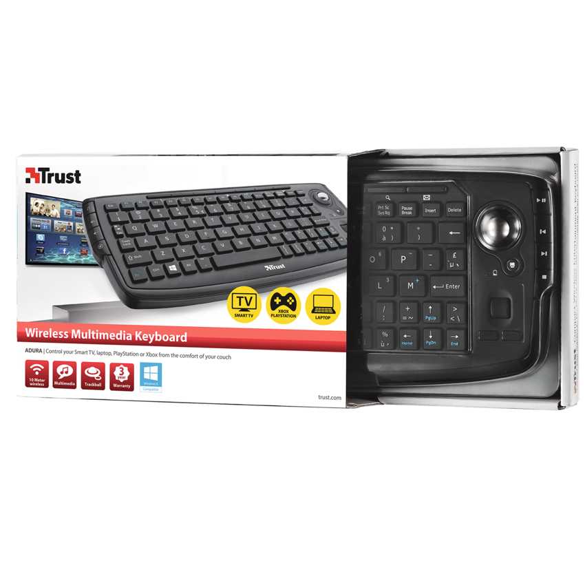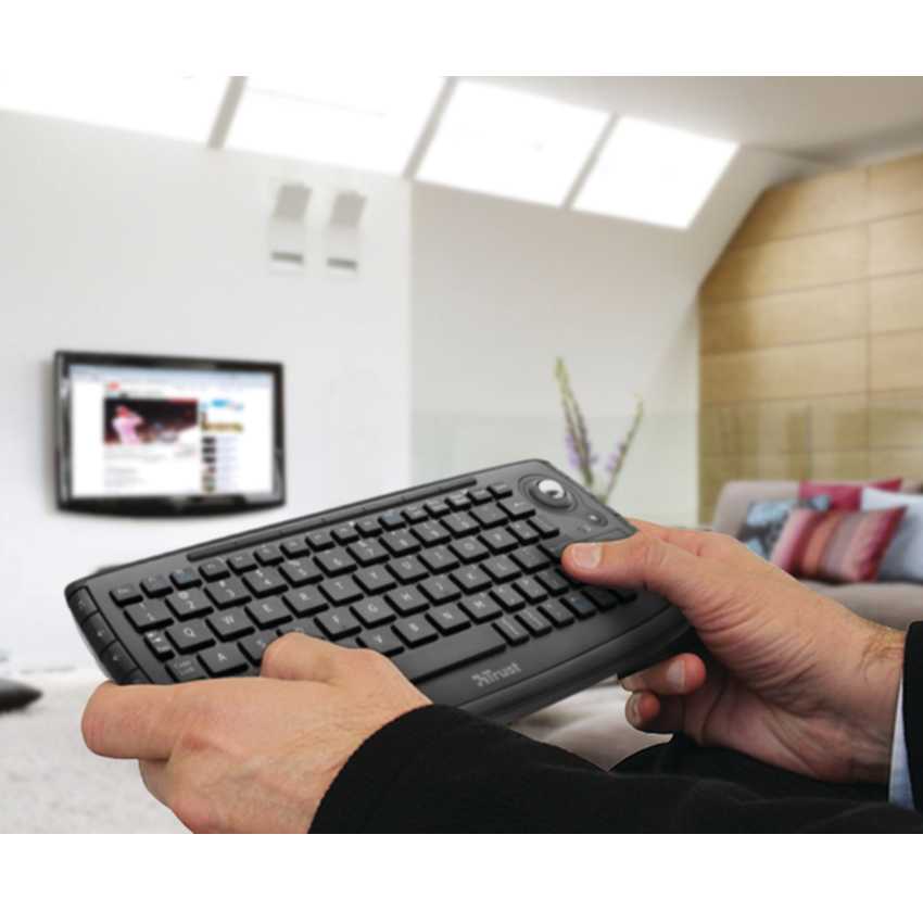 Especificaciones Interfaz del dispositivo: RF inalámbrico Tecnología de conectividad: Inalámbrico Formato del teclado: Mini Estilo de teclado: Derecho Dispositivo apuntador: Trackball Teclado de tamaño completo: No Color del producto: Negro Alcance inalámbrico: 10 m Interfaz de receptor inalámbrico: USB Alimentación: BaterÃa Numero de baterías soportadas: 2 Tipo de batería: AAA Teclado tipo de batería: AAA Número de pilas (teclado): 2 Ratón incluido: No Sistema operativo Windows soportado: Windows 7 Home Premium, Windows 7 Professional, Windows 7 Starter, Windows 7 Ultimate, Windows Vista Business, Windows Vista Home Basic, Windows Vista Home Premium, Windows Vista Ultimate, Windows XP Home, Windows XP Professional USB: Si Dimensiones de teclado (Ancho x Profundidad x Altura): 260 x 113 x 26 mm Peso del teclado: 368 g Receptor incluido: Si Pilas incluidas: Si Compatibilidad: PS3, XBOX 360