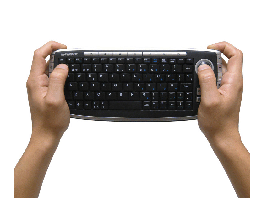 Teclado inalámbrico de tamaño compacto, ideal para Media Center. Incluye ratón con forma de bola.