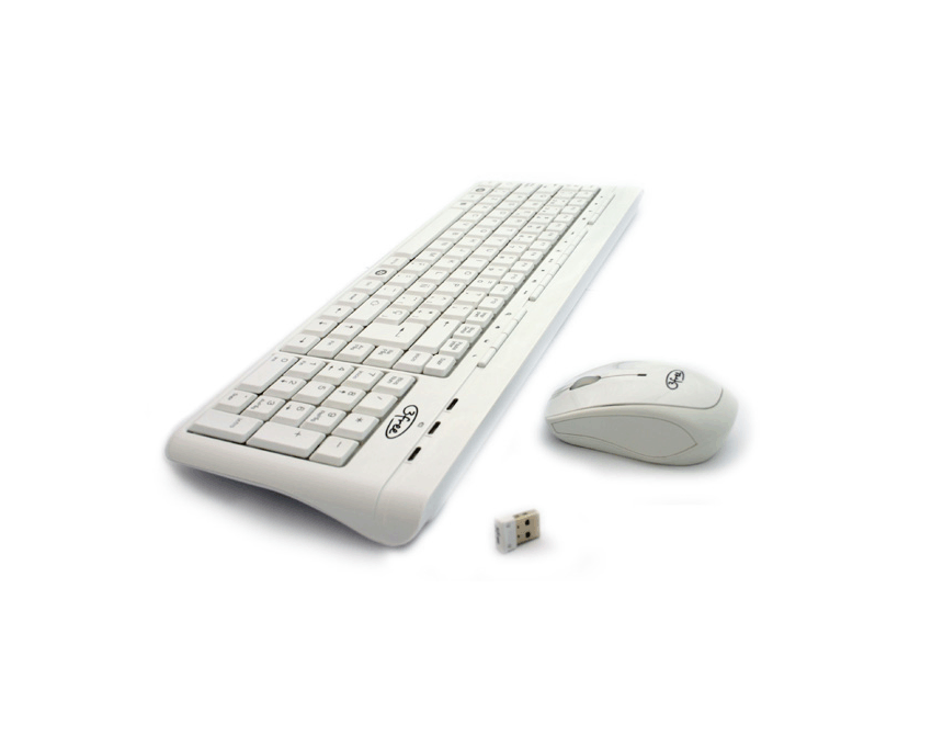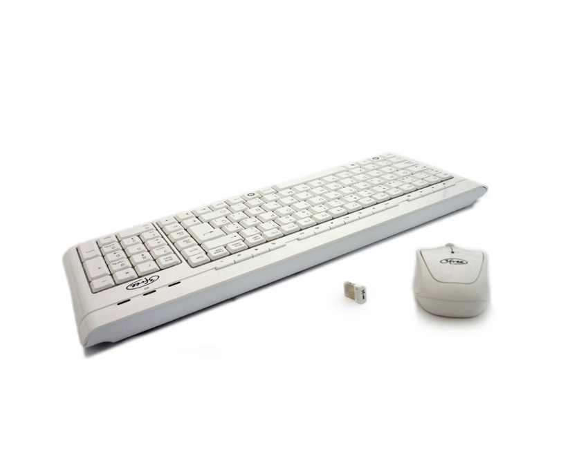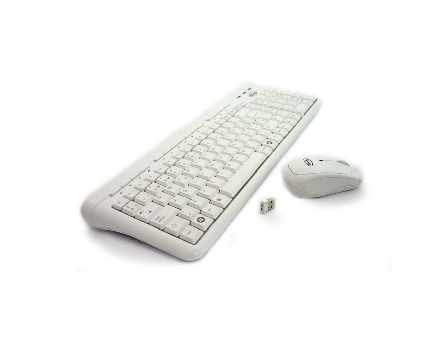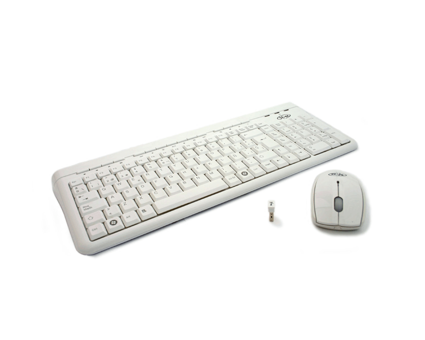 Comunicación 2.4Ghz sin cables * Mini receptor USB * Acabado blanco brillante * Teclado con 15 teclas rápidas multimedia * Teclado Ultra delgado * Teclado con indicador de batería * Ratón óptico con 1000 DPI Contenido del paquete: * Teclado: 425 x 155 x 25 mm * Ratón óptico: 97.8 x 54 x35.5 mm