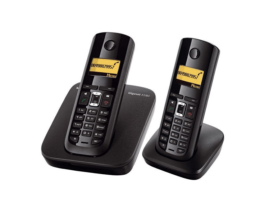 Gigaset A580 Duo, 150 entradas, 96 x 64 Pixeles, Monocromático, 36.1 mm (1.42 "), Negro, 128 x 54 x 104 mm Gigaset A580 Duo. Memoria: 150 entradas. Exhibición: 96 x 64 Pixeles, Monocromático, 36.1 mm (1.42 "). Color: Negro. Peso y dimensiones: 128 x 54 x 104 mm, 50 x 30 x 147 mm. Contro de energía: AAA, 25 h, 210 h