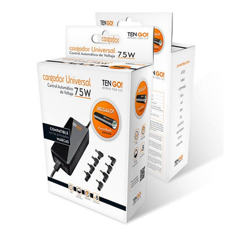 Compacto, funcional y práctico El Cargador Universal de TenGO! incluye 8 conectores para adaptar el cargador a las principales marcas. Además de la compatibilidad con los fabricantes, también adapta el voltaje y se puede usar para todo tipo de dispositivos: ordenadores portátiles, decodificadores, proyectores, televisores, cámaras digitales...
