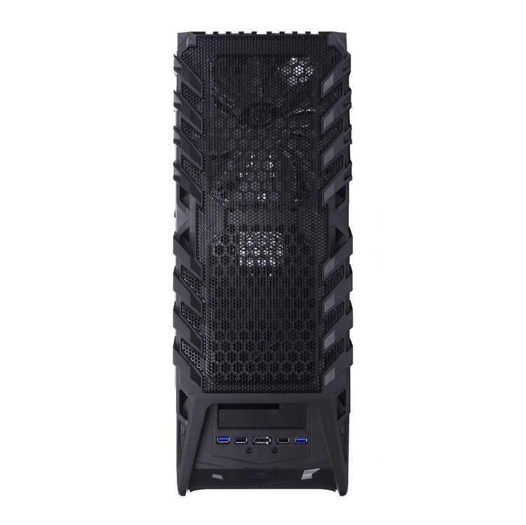 · Diseño gaming para e-Sports · Incluye USB 3.0 que alcanza velocidades de 4.8 Gbps · Dock station en la parte superior para disco duro de 3.5'' o 2.5'' · Frontal metal mesh para una mejor entrada de flujo de aire · Exterior e interior en color negro · Diseño de instalación de unidades de 5.25'' y de 3.5'' sin necesidad de usar herramientas · Pequeña ventana acrílica lateral · Pies elevados para un mejor flujo de aire · Filtro antipolvo para la zona del frontal, lateral y fuente de alimentación · Sistema para ordenar los cables en el interior · Instalación de la fuente en la parte inferior de la caja · Compatible con gráficas de gran tamaño. Hasta 34 cm · Preparada para refrigeración líquida · Sistema antivibración para discos duros · Frontal metal mesh para una mejor entrada de flujo de aire