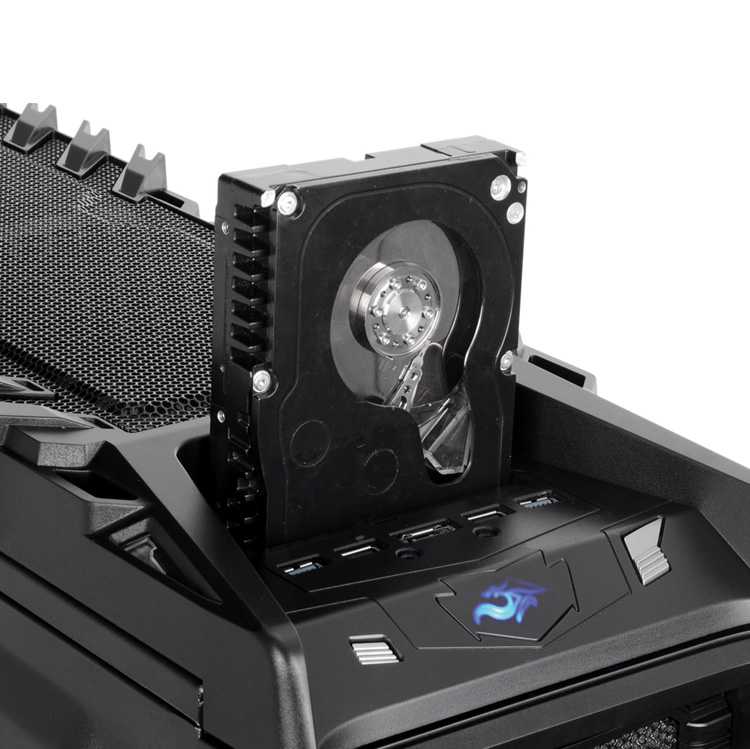 Torre ATX que incluye USB 3.0 de alta velocidad, dock station en la parte superior para discos duros de 3.5'' y 2.5'' y diseño gaming con LEDs azules.
